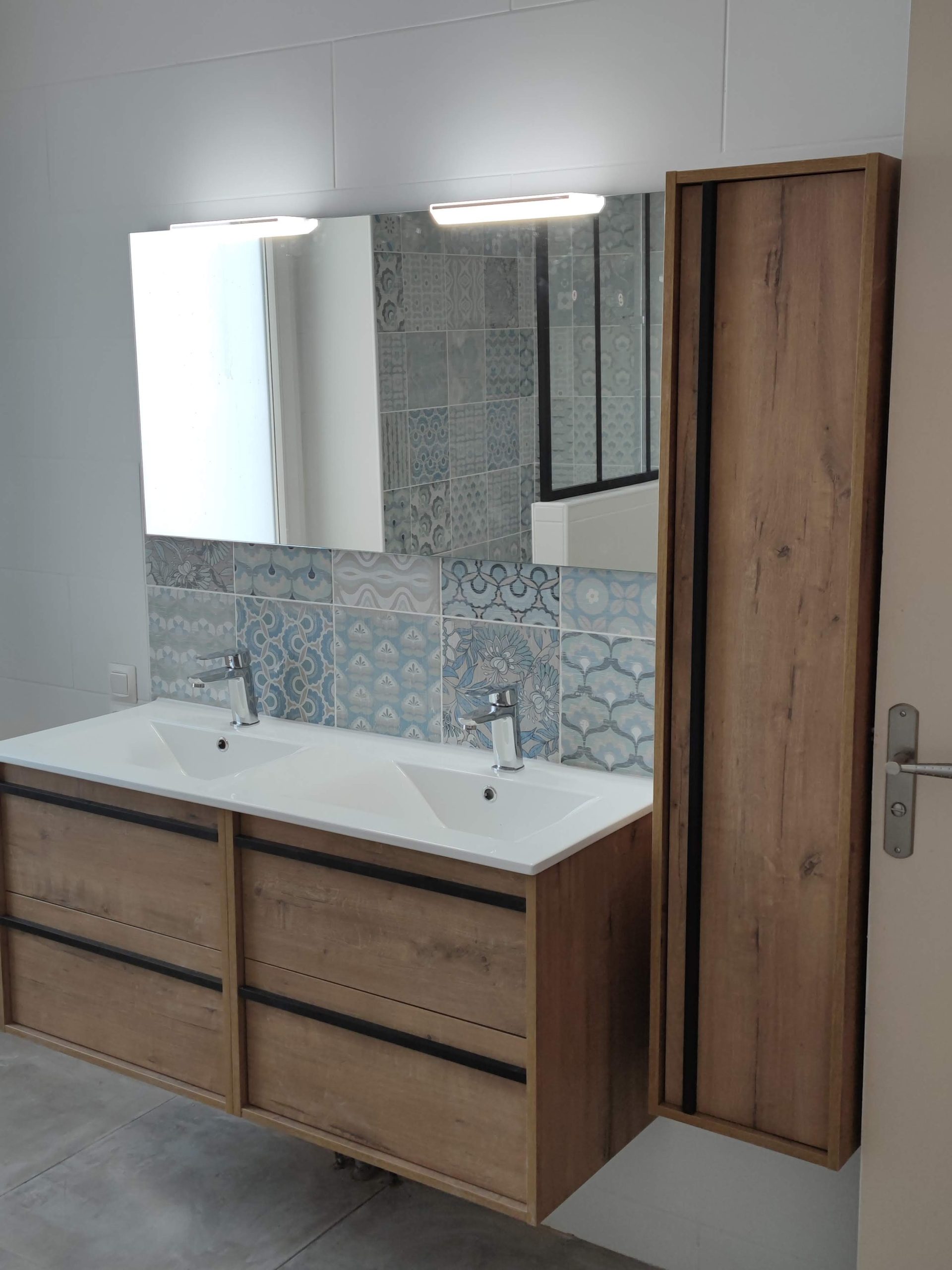 - Ameublement : pose de meubles vasque, miroirs et parois de douche.